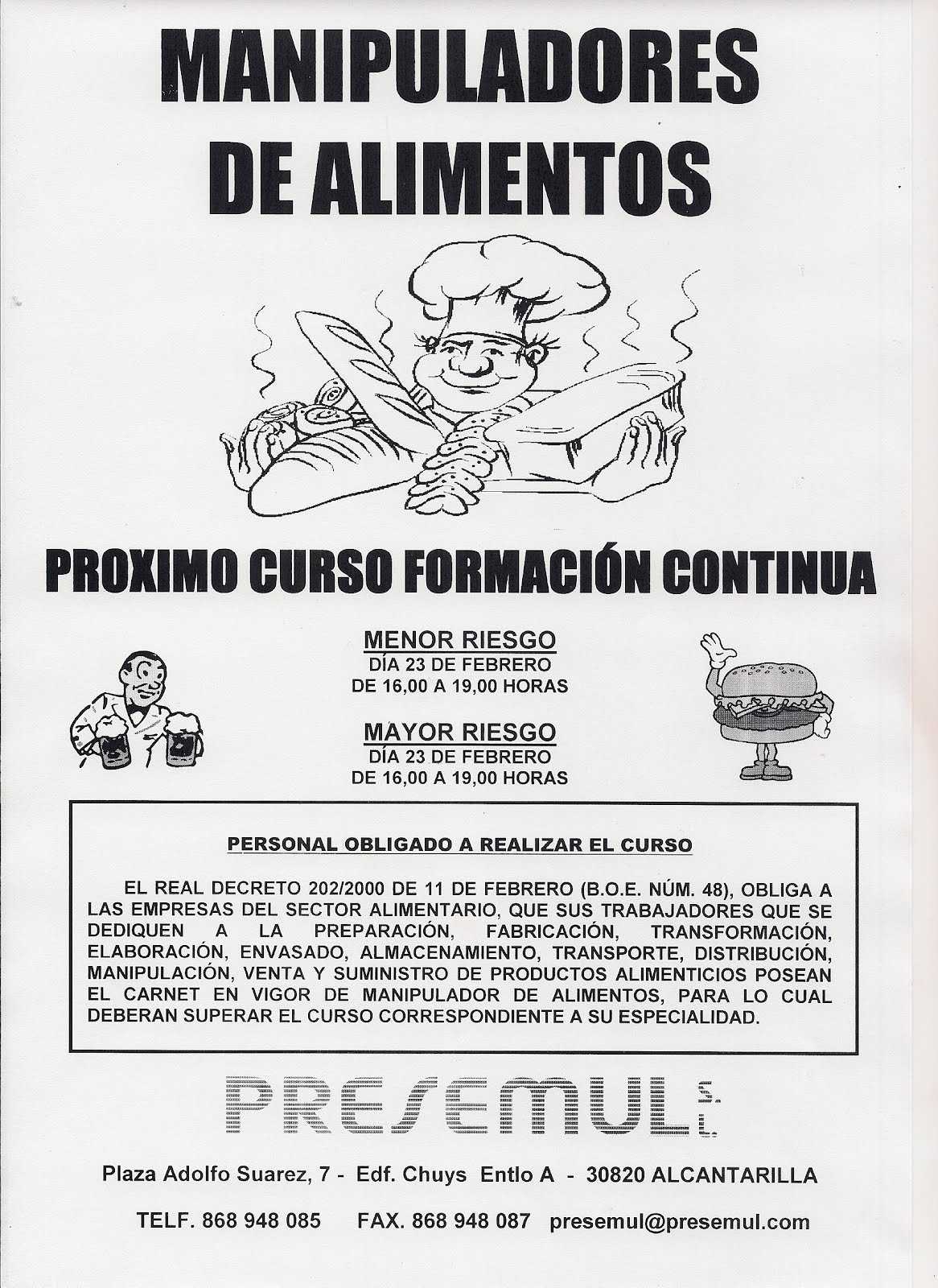 PRESEMUL S.L FORMACION EMPRESARIAL ESPECIALIZADA: CURSO DE MANIPULADOR DE ALIMENTOS