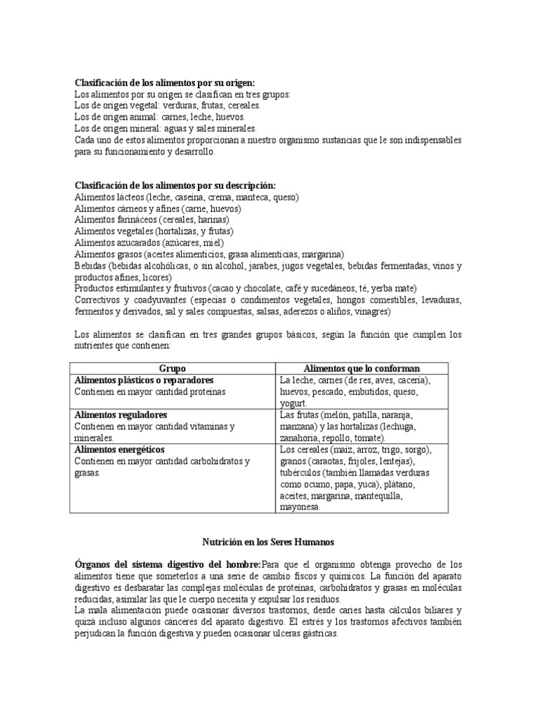 Clasificación de Los Alimentos Por Su Origen | Digestión | Alimentos
