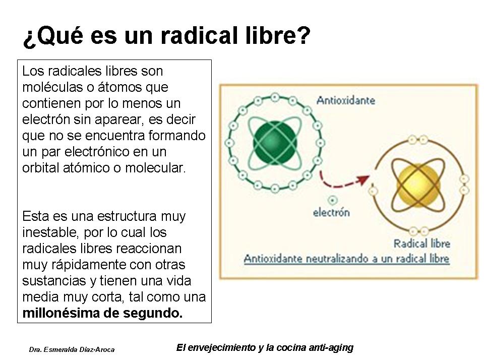 Una vez que el radical libre ha conseguido robar el. La contaminación, la radiación, el humo del cigarrillo y los herbicidas también pueden crear radicales libres en el cuerpo. Son moléculas "desequilibras", con átomos que tienen un electrón en capacidad de aparearse, por lo que son muy La incapacidad de nuestro cuerpo para neutralizar los radicales libres a los que nos exponemos diariamente nos obliga a recurrir a alimentos con la.
