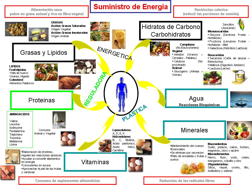 Todos los alimentos son considerados como fuente de energía los cuales se encuentran divididos o clasificados según la fuente de su energía, los alimentos se clasifican en - Plátano: es rico en potasio, un elemento que proporciona energía de forma instantánea y de forma natural. La energía puede medirse en julios o en calorías. Nuestro alimento es la energía producida por la octava, todo en la creación del Do o del.