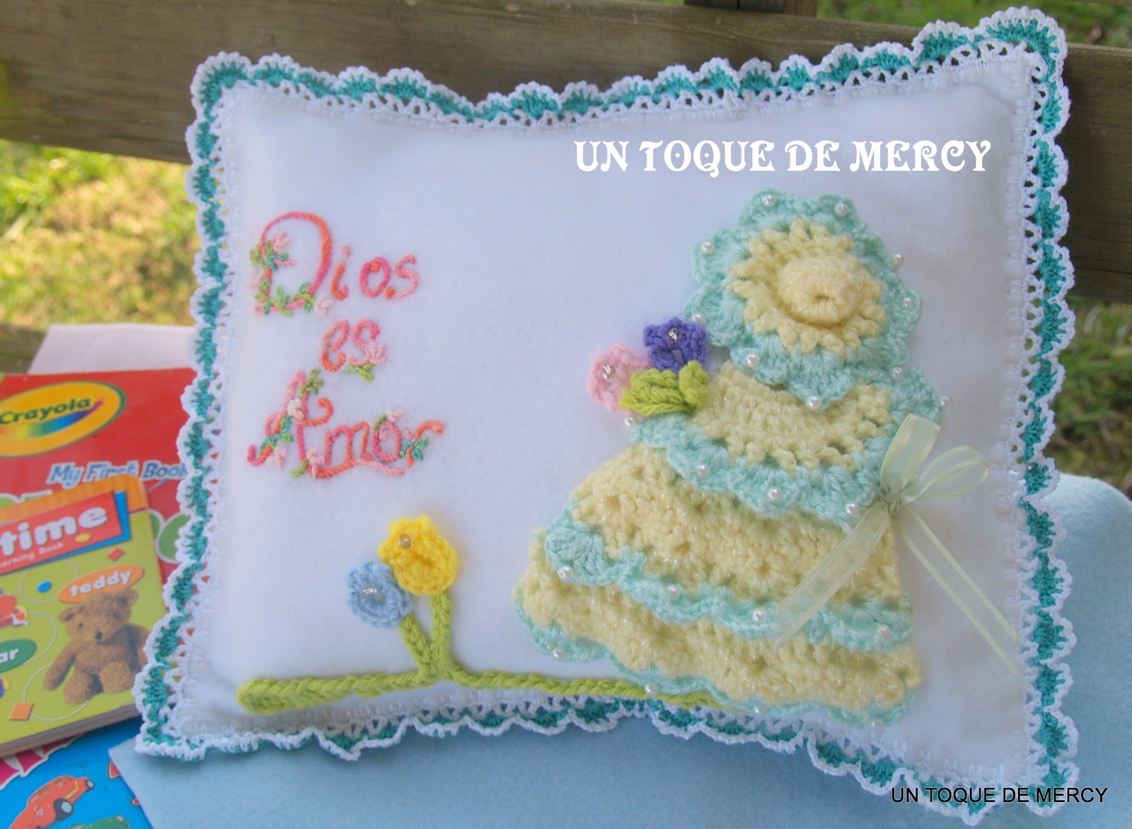 UN TOQUE DE MERCY: COJIN PARA NINA // CON APLICACION DE CROCHET Y MENSAJE BORDADO...//. DIOS ...